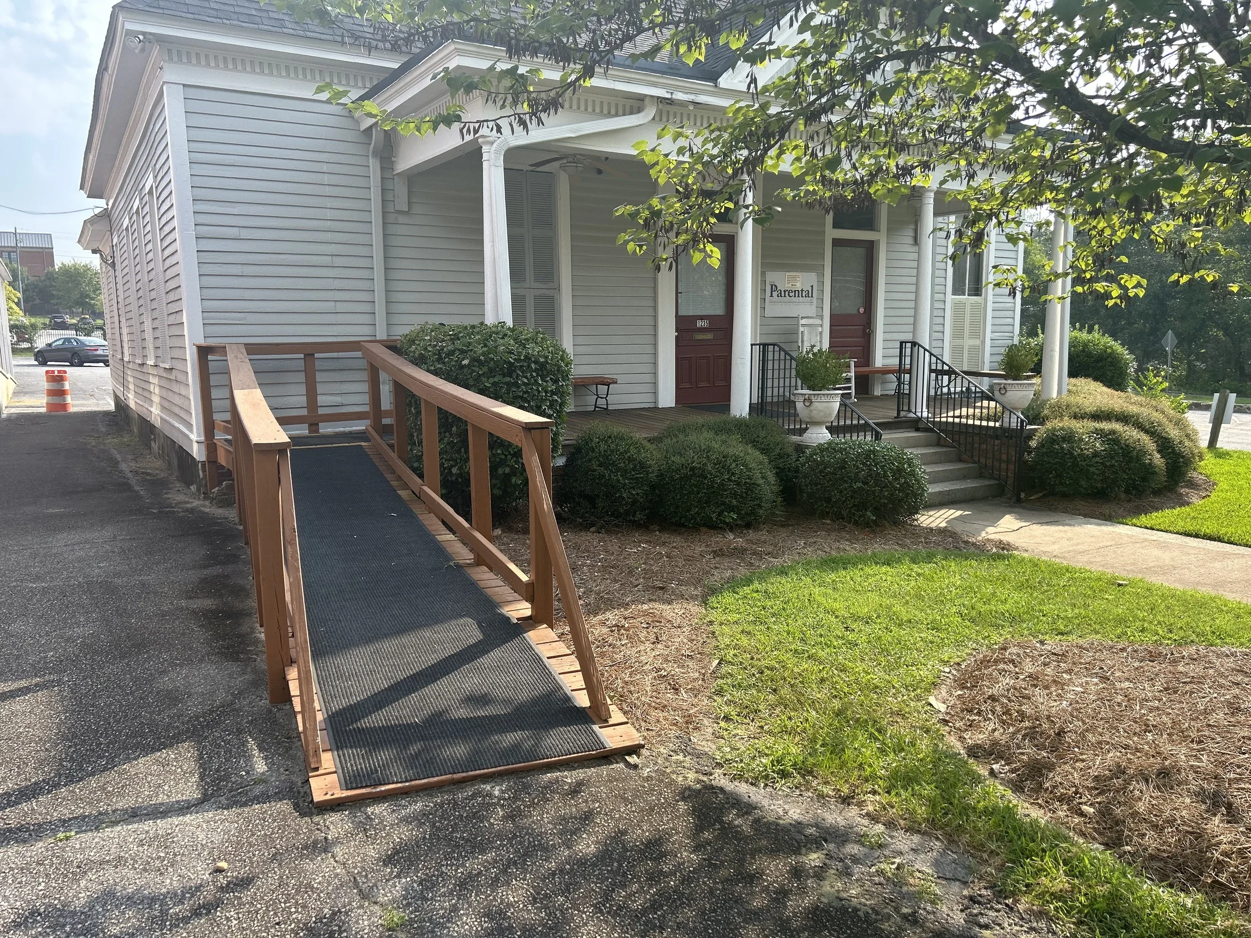 Handicap parking spaces are located behind the lower level of the Sanctuary building, where there is also access to the rear entrance. We have a small elevator just inside that entrance to take you to the upper level and the Sanctuary. Both the Fellowship Hall and the Community Center are accessible via ramps into the buildings.