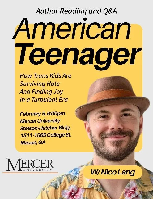 Mercer University is hosting a reading and Q&A with author, Nico Lang in the Stetson-Hatcher Building on Thursday, February 5th at 6:00pm.