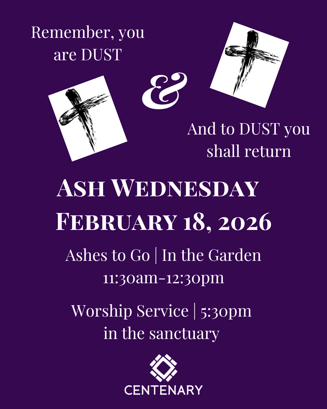 Join us either in your car, on foot, or in the sanctuary for worship , as we receive our ashes as a sign of God’s love and our mortality. May we cherish every breath we take.