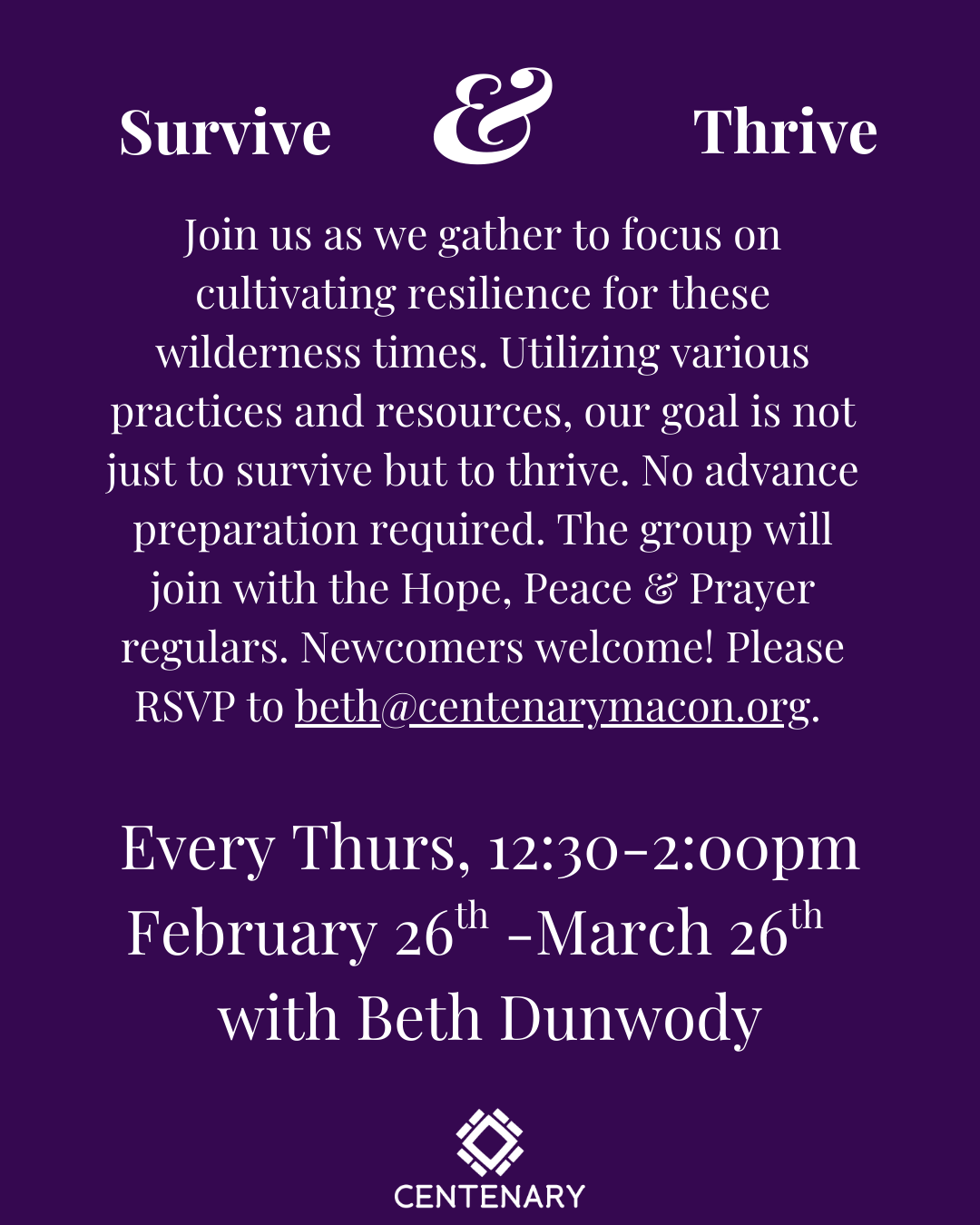 Please RSVP to beth@centenarymacon.org.