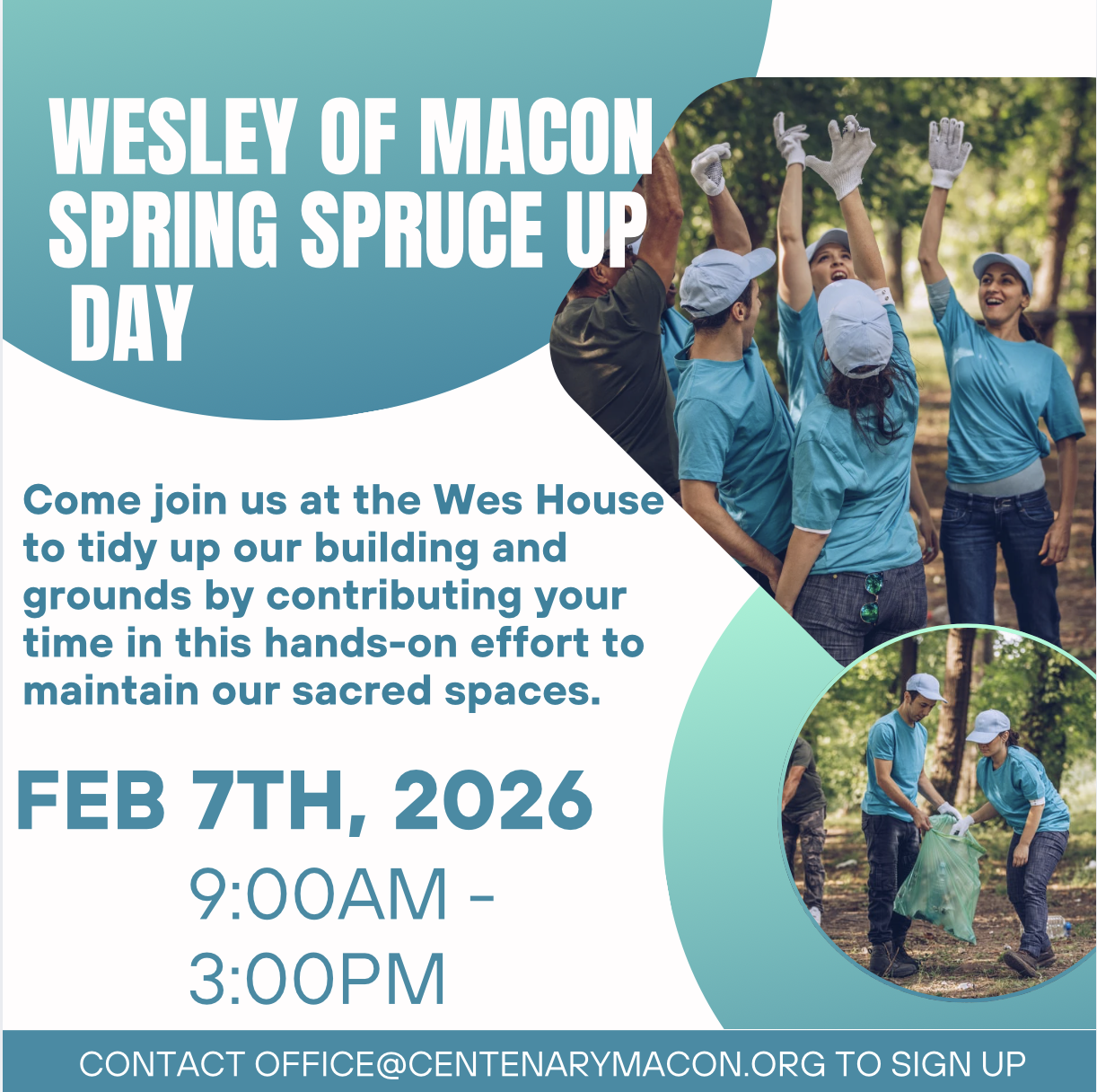 Come on out to join the students and staff of Wesley of Macon for their Spring Spruce Up Day on Saturday, February 7th from 9:00am to 3:00pm. For more information, contact office@centenarymacon.org.