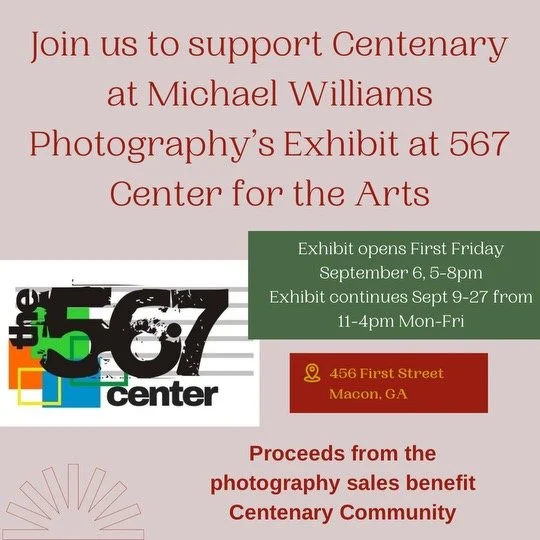 This is a “don’t miss” event! Enjoy the wonderful photography of our own Michael Williams at the 567 Center for the Arts at 456 First Street. The exhibit opens on First Friday, September 6th from 5:00-8:00PM and will continue from September 9th through the 27th from 11:00AM to 4:00PM daily Monday through Fridays. All proceeds from photography sales benefit the Centenary Community.